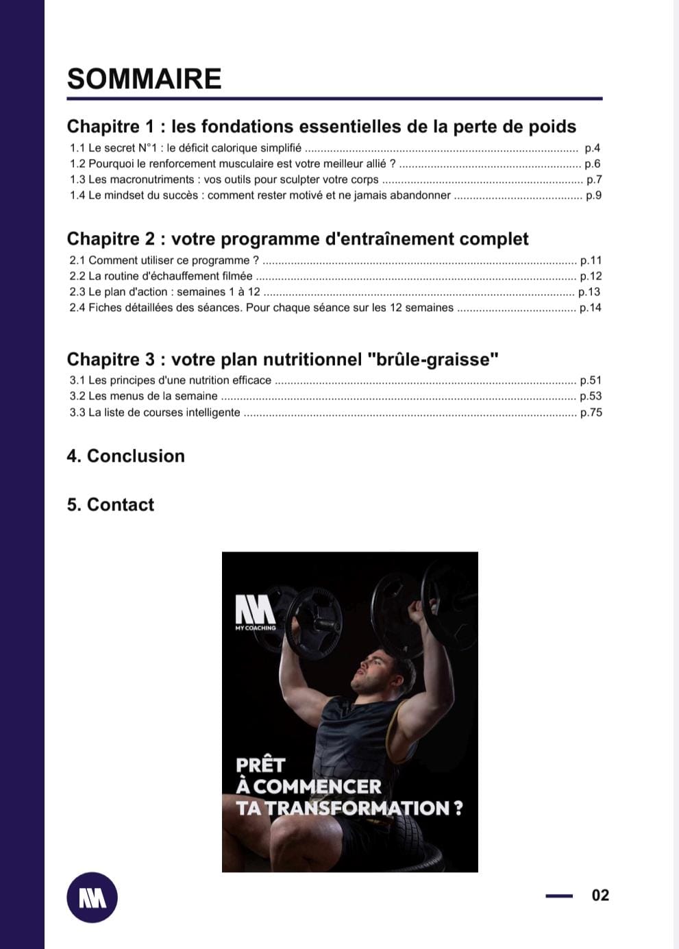 Trouvez le plan idéal pour retrouver une forme physique optimale et maximiser vos performances : programme d’entrainement avec exercices détaillés sur 12 semaines, plan nutritionnel complet, guide de récupération et bien plus encore. Accès à des ressources vidéos exclusives.